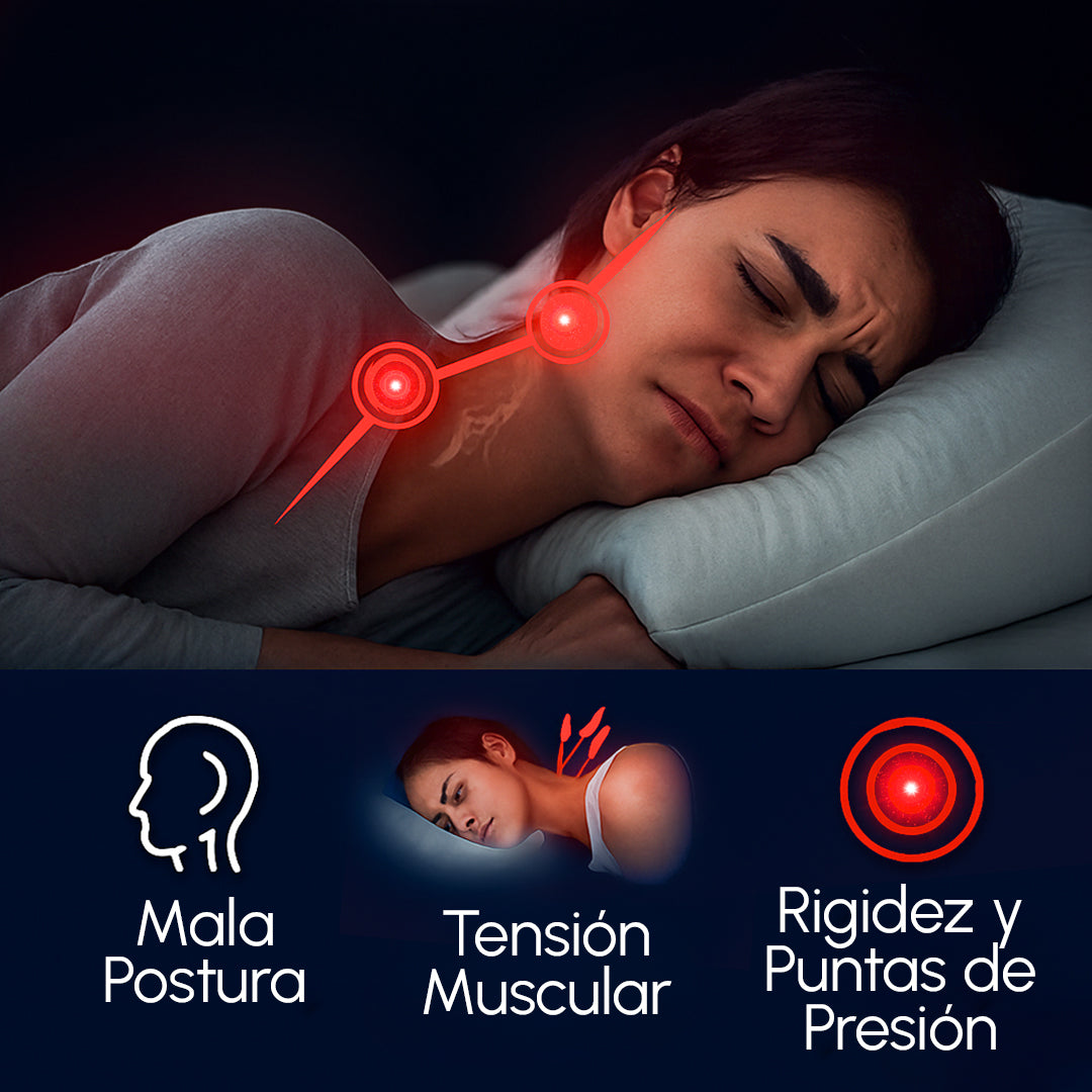 Dormir con una almohada inadecuada fuerza tu cuello y espalda durante toda la noche. Esa mala postura provoca tensión, rigidez y puntos de presión que se convierten en dolor cada mañana.